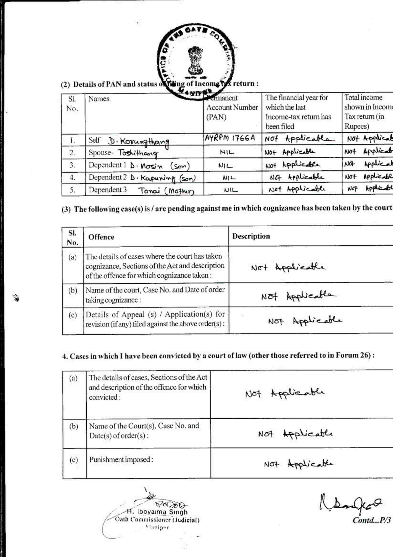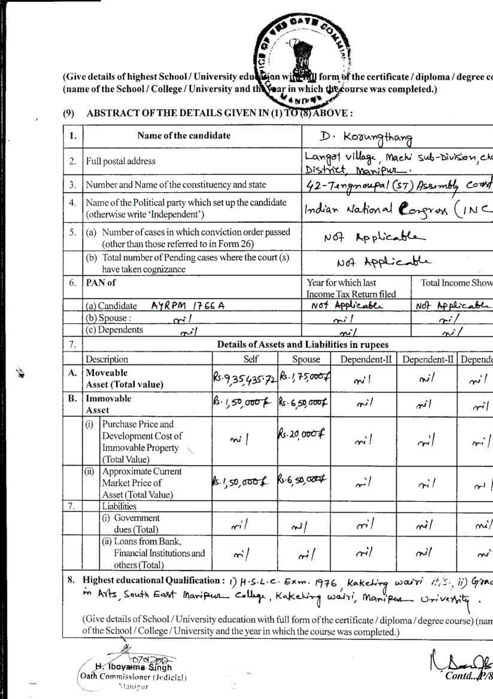 3 | D. KORUNGthANG | Indian National Congress(INC) |