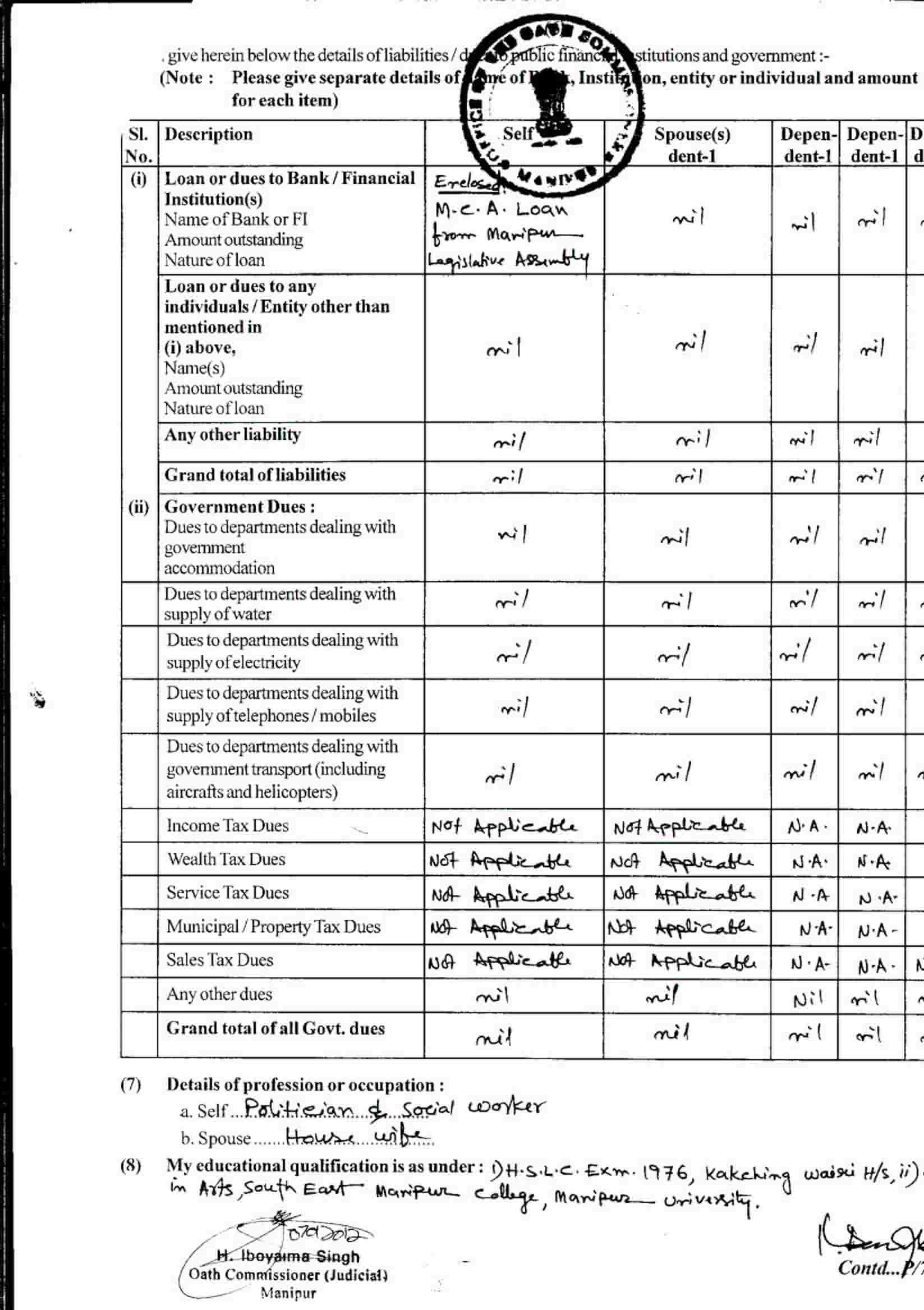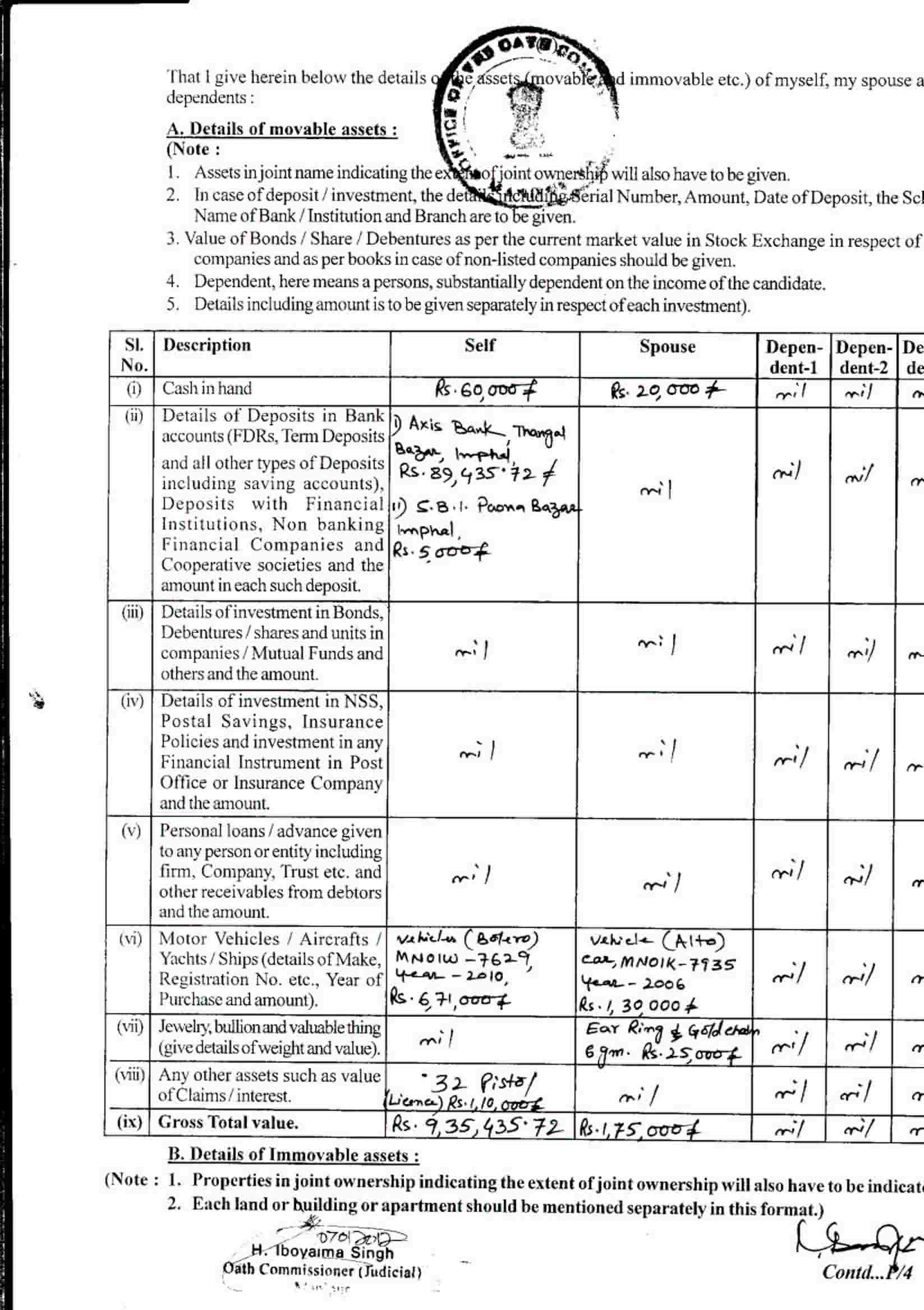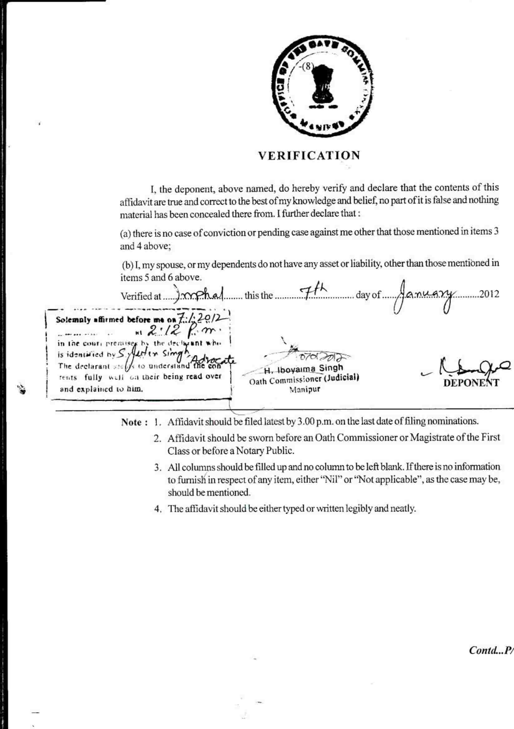 Assembly Election 2012 - Affidavits filed by Candidate |