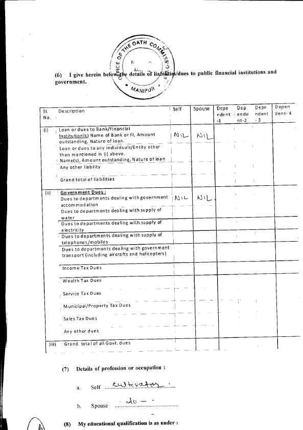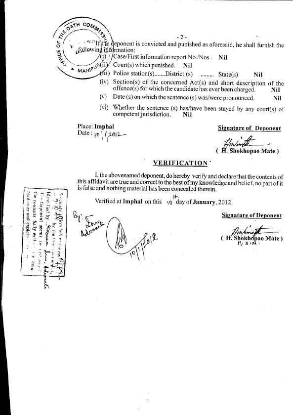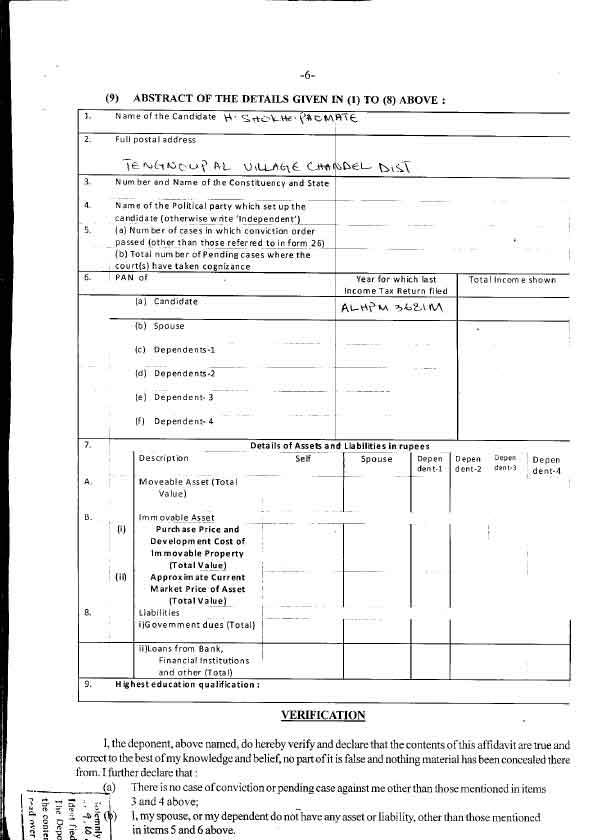 Assembly Election 2012 - Affidavits filed by Candidate |