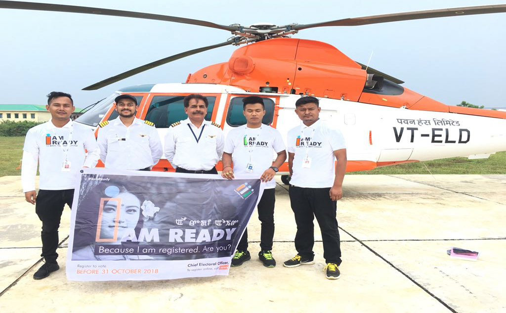 Participants : SVEEP Nodal officer, AERO, Election staffs, Pilot and staffs of Pawan Hans, Ema keithel Street vendors