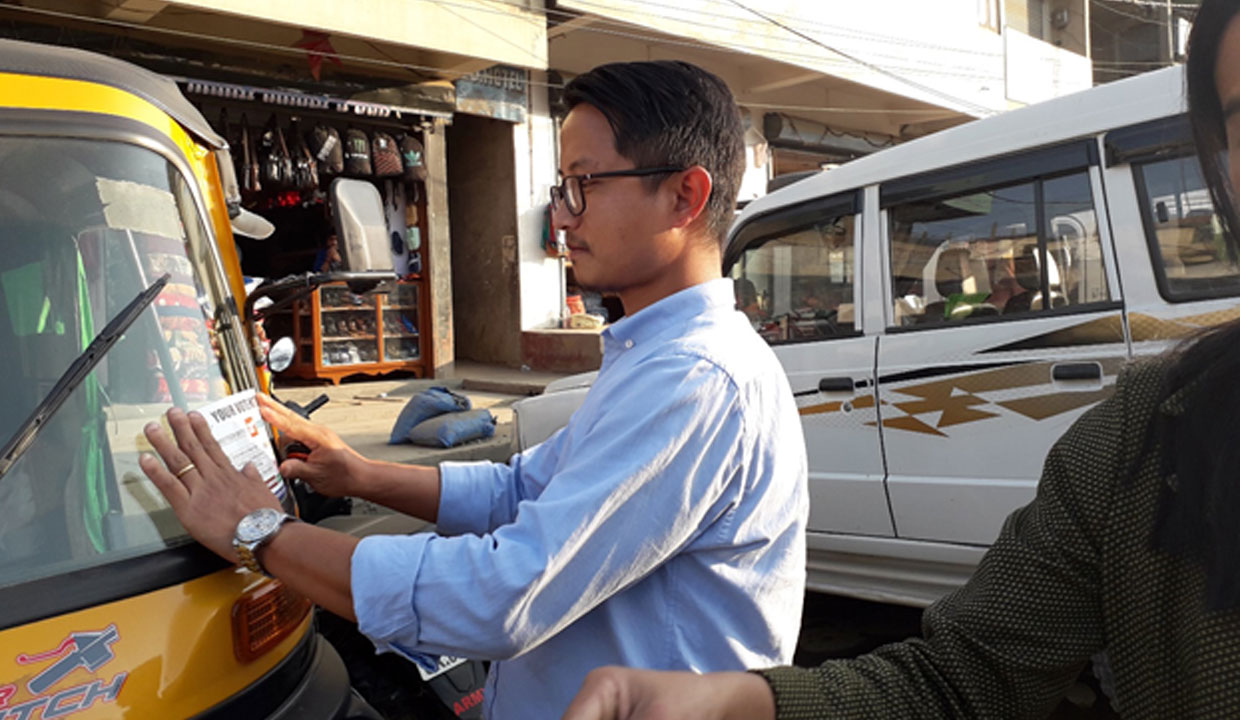 Creating awareness on SSR-2019 by putting stickers on Autos and passengers vehicles.